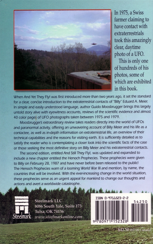 When And Yet They Fly! was first introduced more than two years ago, it set the standard for a clear , concise introduction to the extraterrestrial contacts of “Billy” Eduard A. Meier. In simple and easily understood language, author Guido Moosbrugger brings this largely untold story alive with eyewitness accounts, reviews of the scientific evidence and almost 40 color pages of UFO photographs taken between 1975 and 1979.