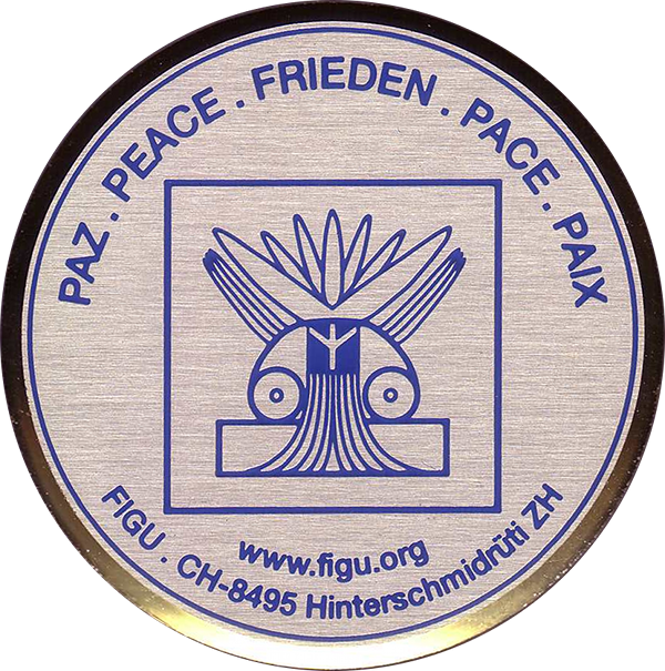 Anstecknadel mit Sicherheitsnadel Metall versilbert, Schrift und Sujet blau, vergoldeter Rand, Durchmesser 35mm