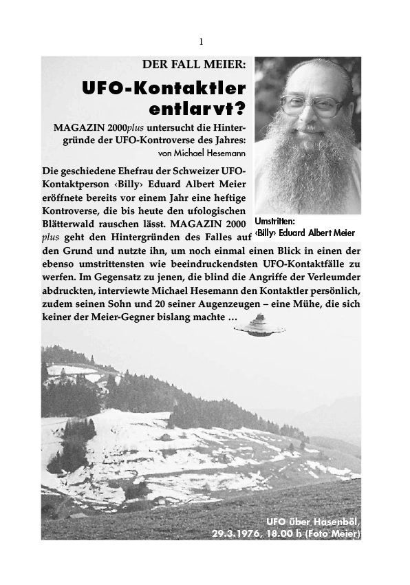 Artikel von Michael Hesemann aus dem Magazin 2000plus, mit schriftlicher Genehmigung des Autors und Verlags