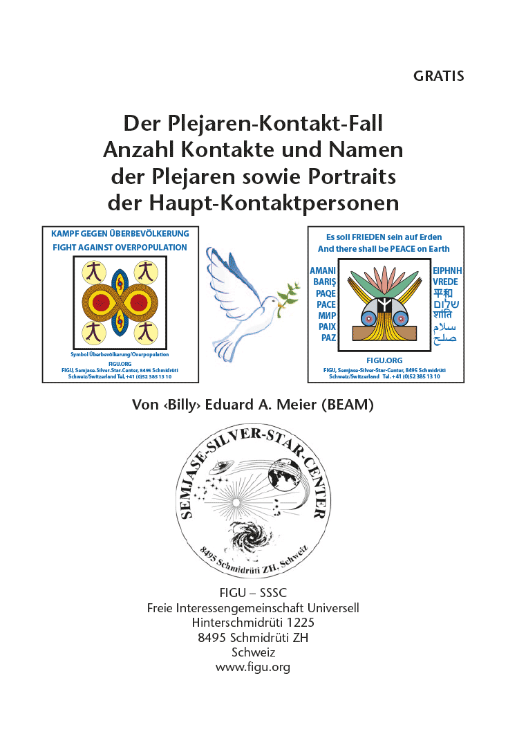 Anzahl Kontakte und Namen der Plejaren sowie Portraits der Haupt-Kontaktpersonen von “Billy” Eduard Albert Meier (BEAM)