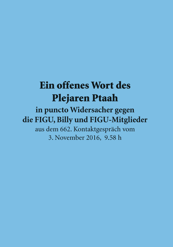 in puncto Widersacher gegen die FIGU, Billy und FIGU-Mitglieder aus dem 662. Kontaktgespräch vom 3. November 2016, 9.58 h