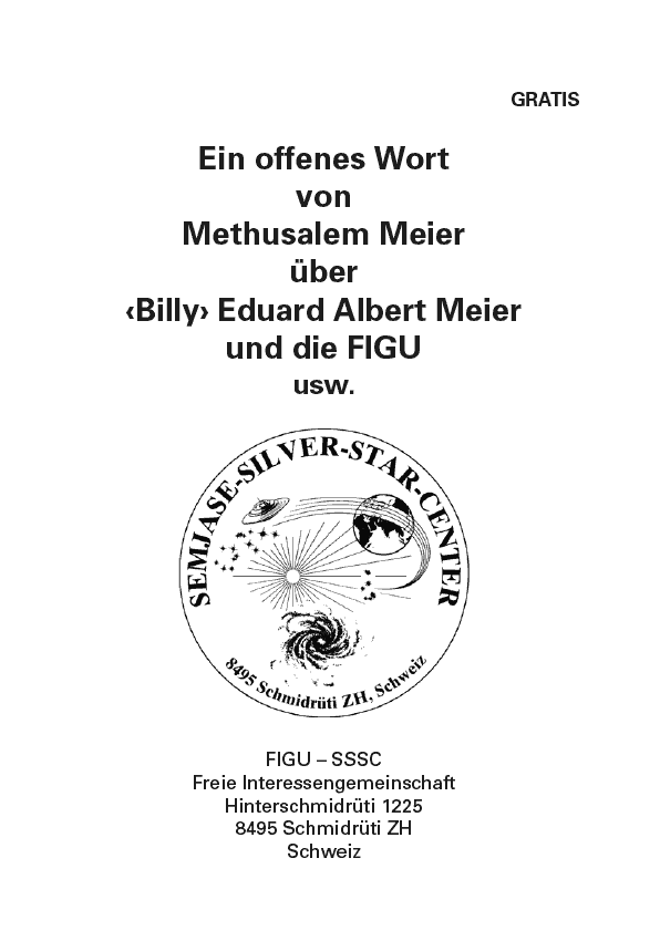 Ein offenes Wort von Methusalem Meier über ‹Billy› Eduard Albert Meier und die FIGU usw.