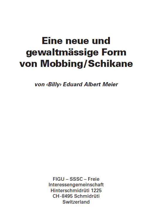 Eine neue Form des Mobbing resp. der Schikane nennt sich in englischer Sprache ‹Bullying›, was frei als ‹Brutalmobbing›, ‹Gewaltmobbing› oder ‹Terrormobbing› übersetzt werden kann. Dabei handelt es sich effective um eine psychische Folter schlimmsten Masses. Darin eingeschlossen ist auch das ‹Internetmobbing›, bei dem hauptsächlich pikante Photos und schmierige Artikel usw. veröffentlicht werden, die auf jene gemünzt sind, die gemobbt resp. schikaniert werden …