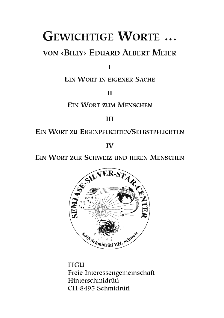 Billy spricht ein Wort in eigener Sache; ein Wort zu Menschen; ein Wort zu Eigenpflichten/Selbstpflichten und ein Wort zur Schweiz und ihren Menschen.