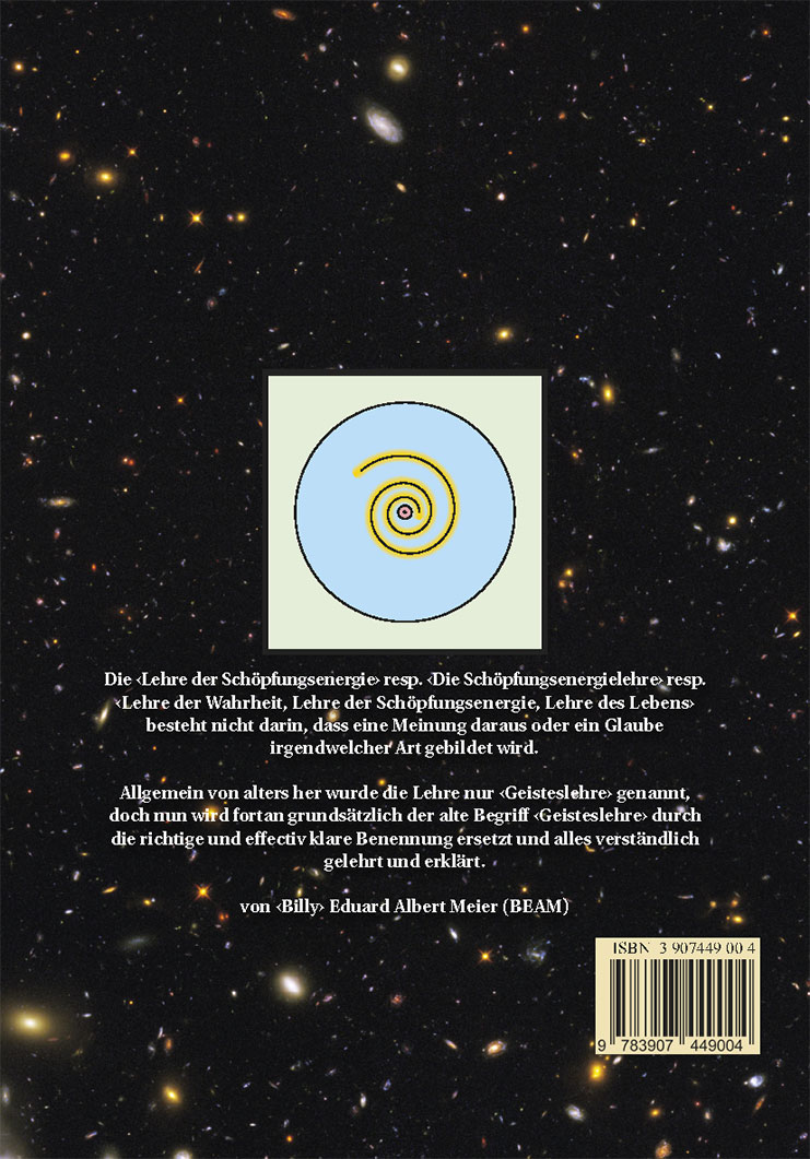 Die ‹Lehre der Schöpfungsenergie› resp. ‹Die Schöpfungsenergielehre› resp. ‹Lehre der Wahrheit, Lehre der Schöpfungsenergie, Lehre des Lebens› besteht nicht darin, dass eine Meinung daraus oder ein Glaube irgendwelcher Art gebildet wird. Allgemein von alters her wurde die Lehre nur ‹Geisteslehre› genannt, doch nun wird fortan grundsätzlich der alte Begriff ‹Geisteslehre› durch die richtige und effectiv klare Benennung ersetzt und alles verständlich gelehrt und erklärt.