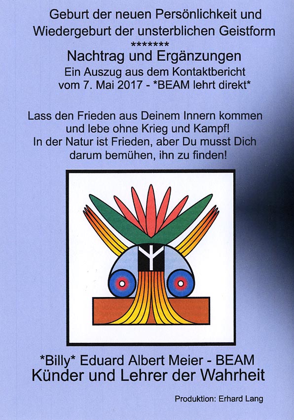 DVD – Geburt der neuen Persönlichkeit und Wiedergeburt der unsterblichen Geistform – Nachtrag und Ergänzungen Ein Auszug aus dem Kontaktbericht vom 7. Mai 2017, “BEAM” lehrt direkt