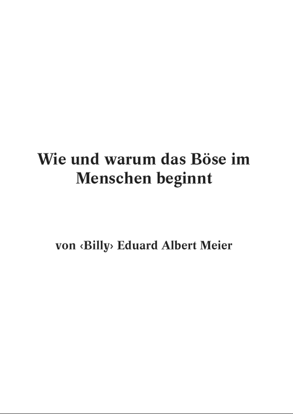 “Das Böse im Menschen beginnt – wie das Gute ebenso – mit winzigen Kleinigkeiten der einen oder andern Art. In bezug auf das Böse sind es schon kleine, kleinste und geringste Anstösse irgendwelcher negativer Art, die dazu führen, dass der Mensch ausartet, Hass in sich erschafft, Rache und Vergeltung übt und zum Schläger, Berserker, Kriminellen, Verbrecher, Folterer, Rassisten sowie zum Menschenhasser, Gläubigen und Mörder wird. Das Ganze trifft auf ganz normale Menschen zu, wenn sie nicht gross genug in sich selbst, labil und unausgeglichen, nicht kritisch und ihres Verstandes sowie ihrer Vernunft nicht in der Weise fähig sind, sich selbst und ihre eigenen Gedanken, Gefühle, Handlungen und Taten massgebend zu kontrollieren und sie logisch zu bewerten.”